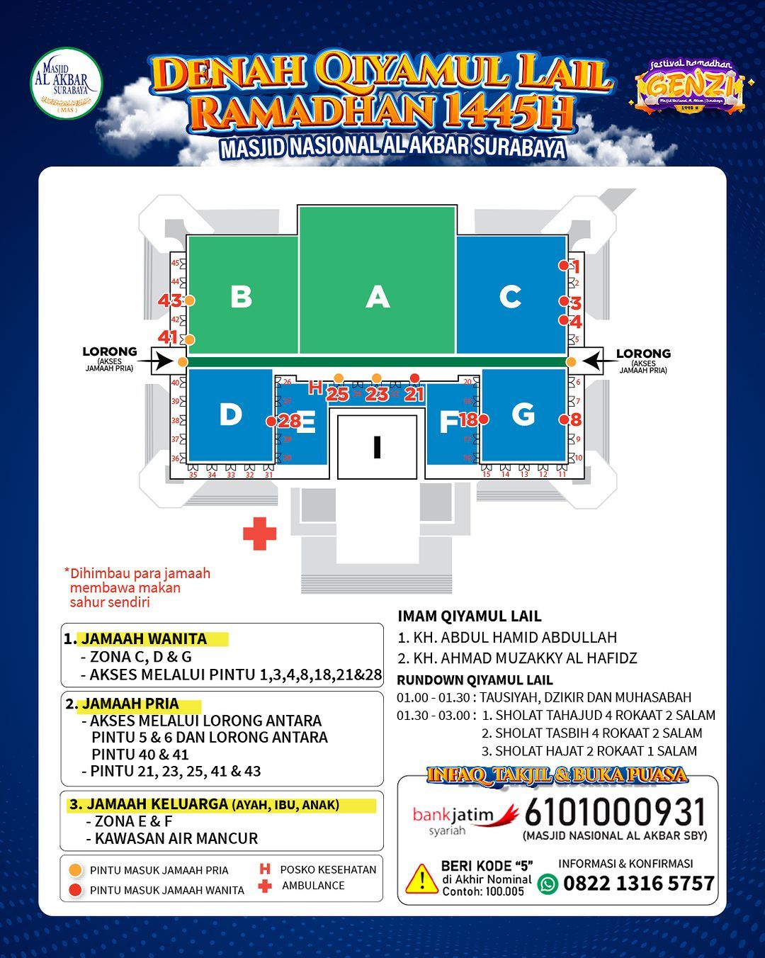 Persiapan tersebut meliputi jadwal kegiatan, kapasitas area, panduan lokasi nya melalui aplikasi virtual tour 3D (https://www.masjidalakbar.or.id/virtualtour/), hingga persediaan nasi sahur dan air mineral.
